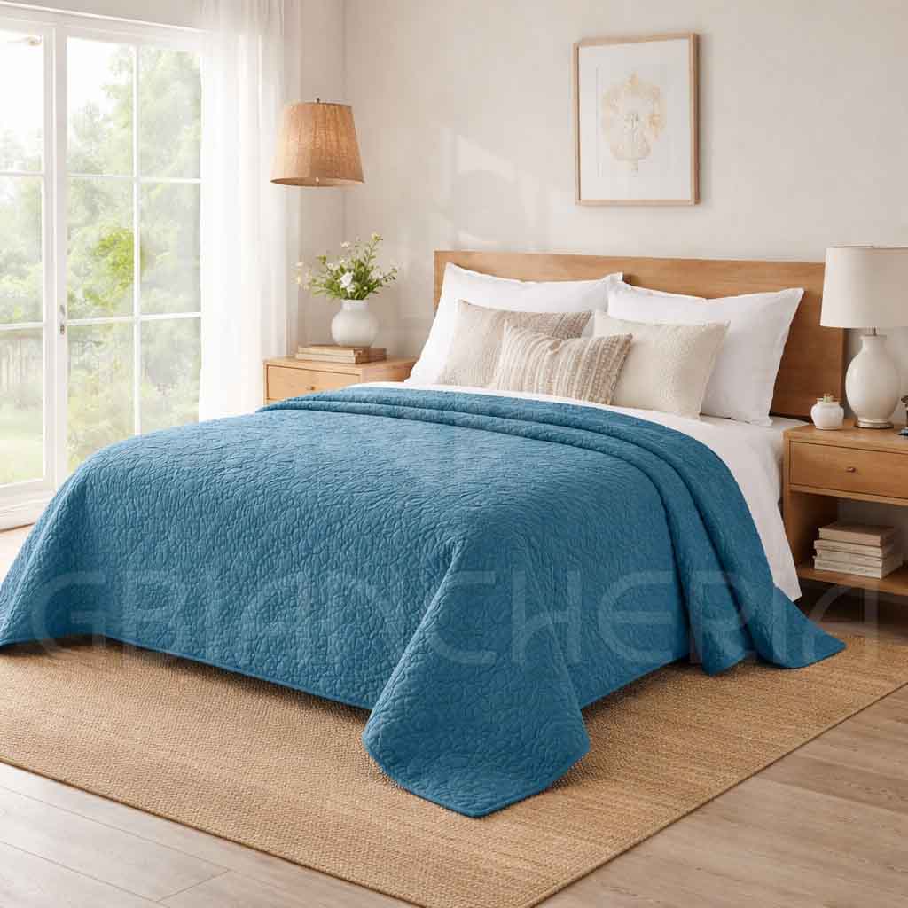 Il Copriletto Matrimoniale Trapuntato Frisè è la scelta ideale per chi desidera un letto elegante, accogliente e pratico durante la mezza stagione.