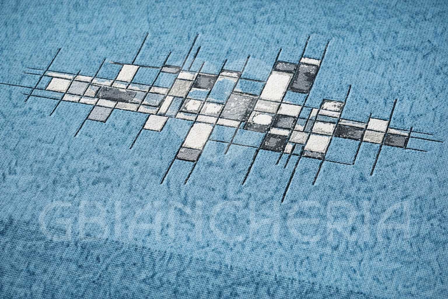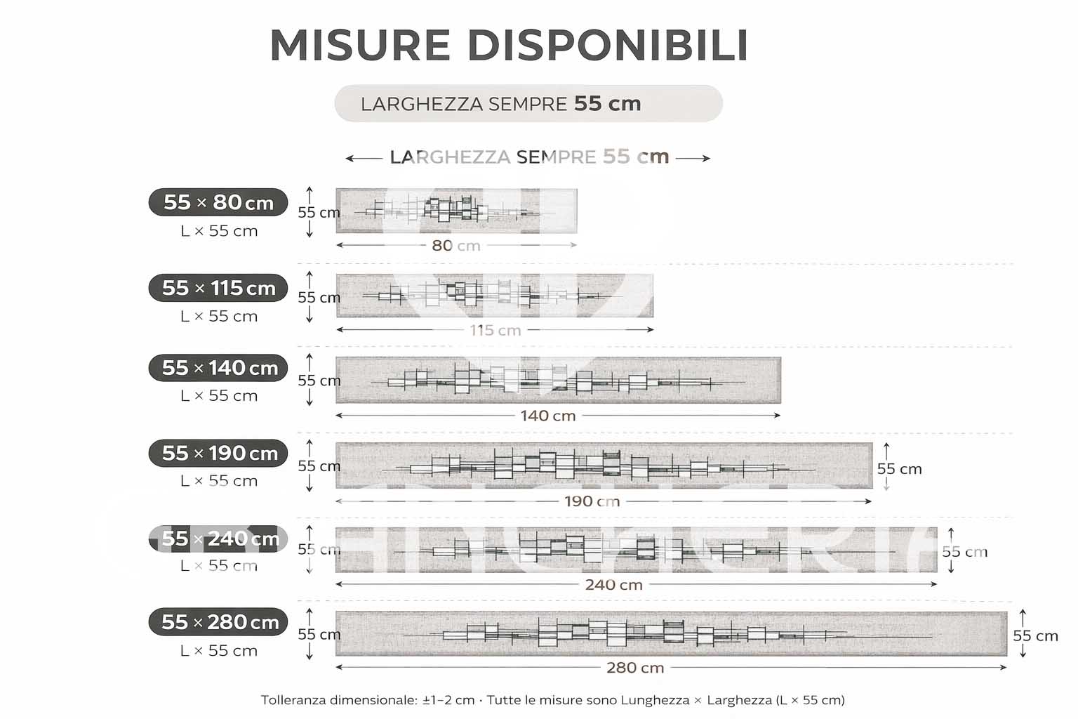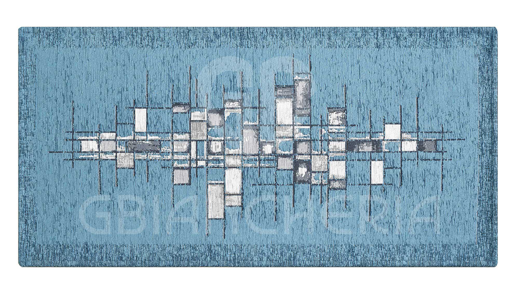 Realizzato in ciniglia con lavorazione Jacquard, presenta una raffinata fantasia geometrica con linee e rettangoli nei toni neutri, adatta a qualsiasi stile di arredamento.