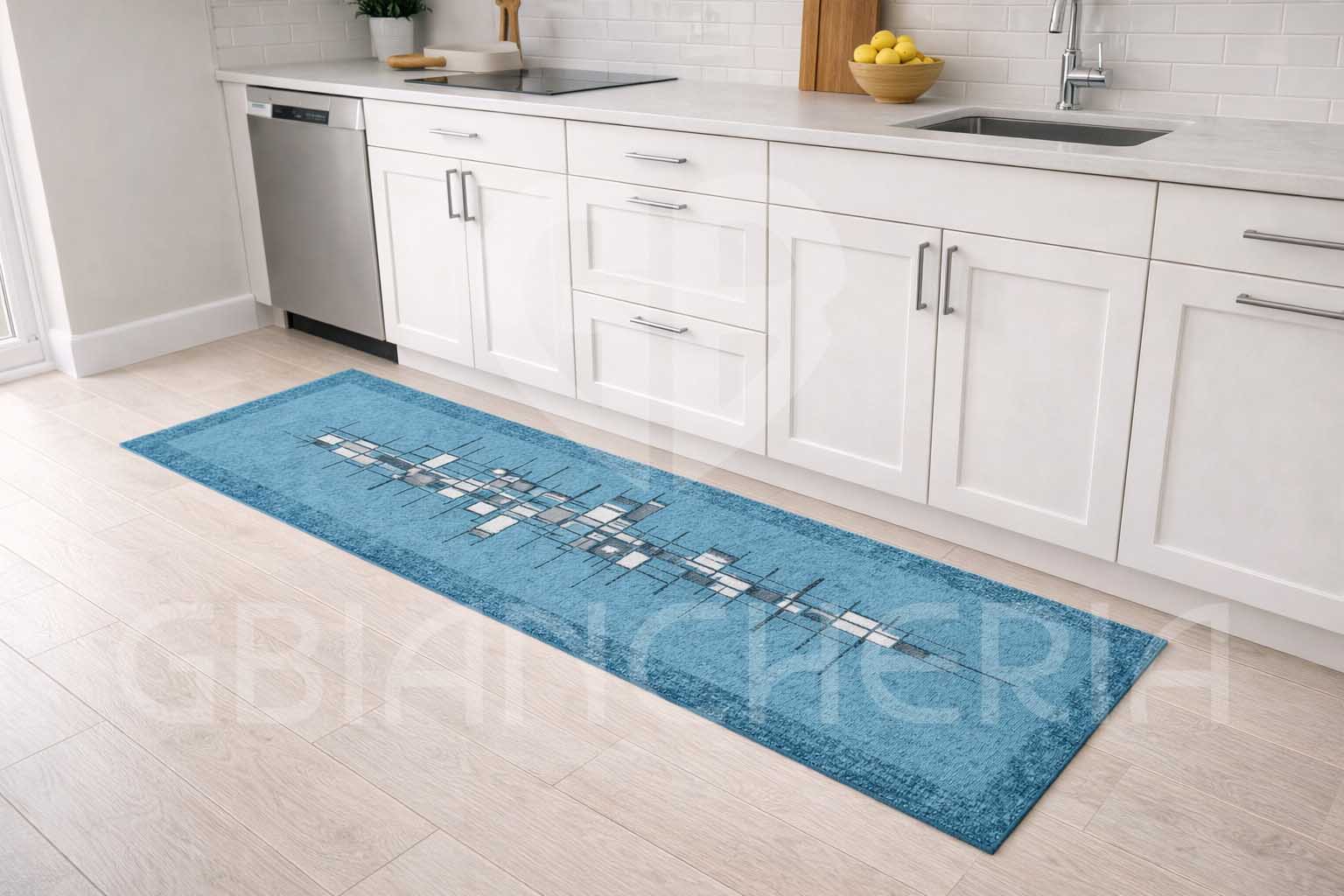 Il tappeto cucina jeans antiscivolo Pixel by Suardi è la soluzione ideale per chi cerca una passatoia moderna, pratica e di qualità Made in Italy. Perfetto per cucina, bagno e corridoio, unisce design contemporaneo e funzionalità.
