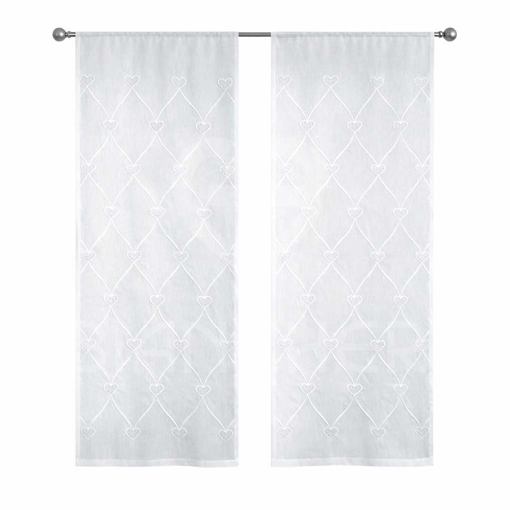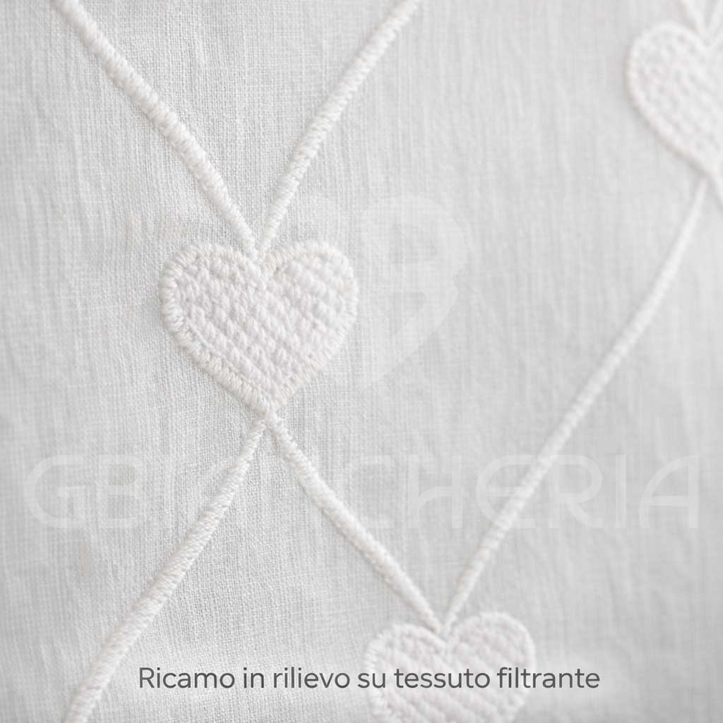 La tenda Giulia bianca semitrasparente con ricamo cuori è una soluzione elegante e luminosa per arredare la casa con stile.