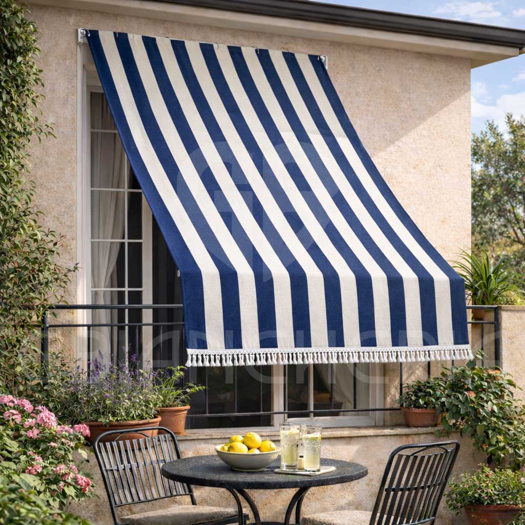 Il design semplice con frangia decorativa si adatta facilmente a diversi stili di balcone e facciata.