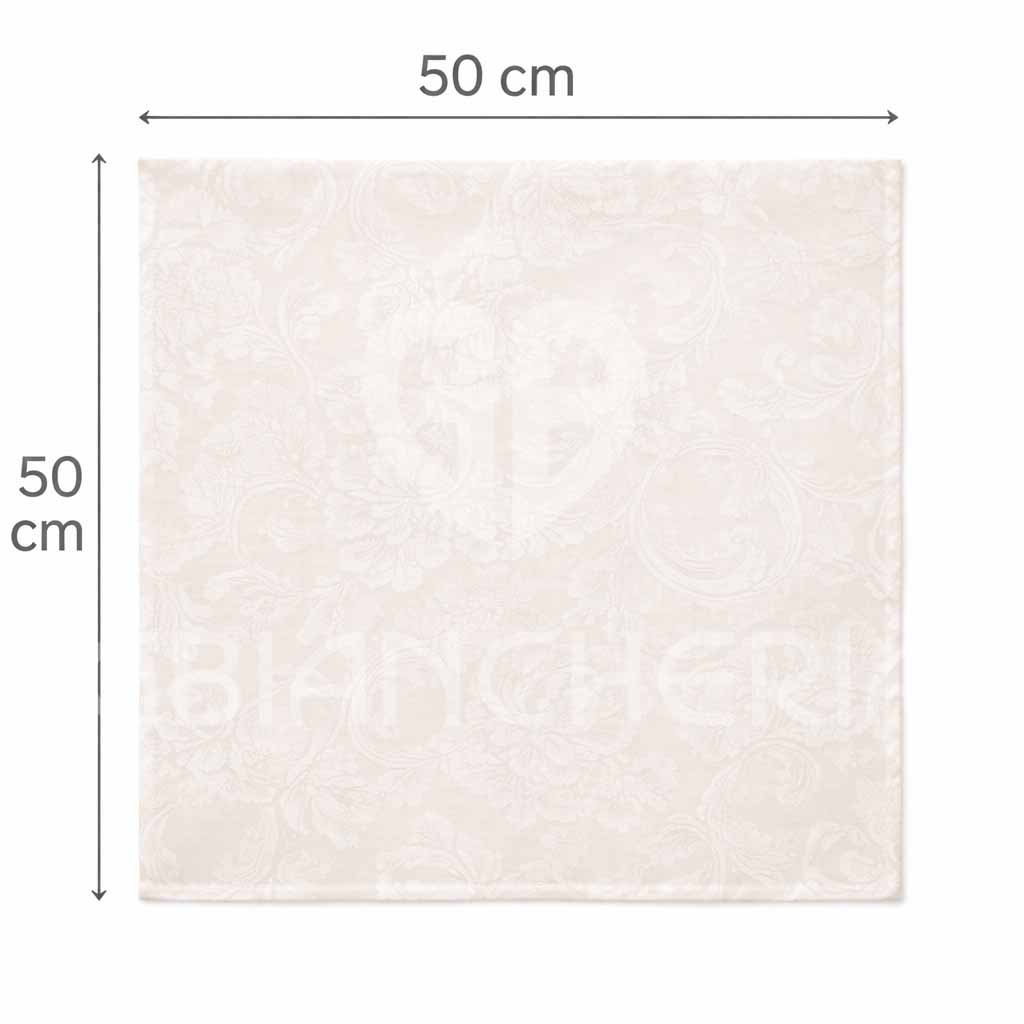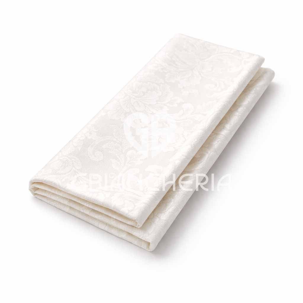 Completa la tua tavola con i tovaglioli coordinati in Fiandra di Cotone Damascata, realizzati nello stesso tessuto e colore.